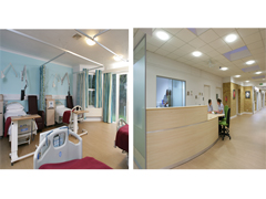 滑りにくく、メンテナンス性、防音、防水、耐久性、に優れた衛生的な床材です。